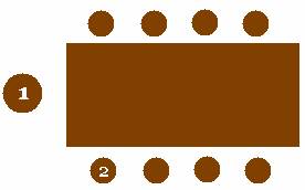 Trong các cuộc tiếp khách xã giao, nếu trong phòng là bộ bàn ghế thường dùng để tiếp khách đàm phán, thì người tiếp chính bên chủ thường ngồi ở đầu bàn (vị trí số 1 trong sơ đồ dưới đây). Những người khác của bên chủ ngồi một bên. Đoàn khách ngồi một bên, trong đó trưởng đoàn hoặc người có chức vụ cao nhất trong đoàn khách ngồi gần nhất với người tiếp chính bên chủ (vị trí số 2 trong sơ đồ dưới đây).